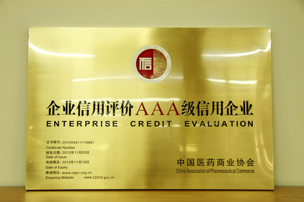 2012年12月4-5日,中國醫(yī)藥商業(yè)協(xié)會在廣州舉辦“2012中國藥品流通行業(yè)年度大會”,會上發(fā)布了由中國醫(yī)藥商業(yè)協(xié)會開展的第四批中國醫(yī)藥商業(yè)行業(yè)企業(yè)信用等級評價的評定結果,公司繼2009年度后再次被評定為中國醫(yī)藥商業(yè)行業(yè)“企業(yè)信用評價AAA級信用企業(yè)”(有效期三年)。